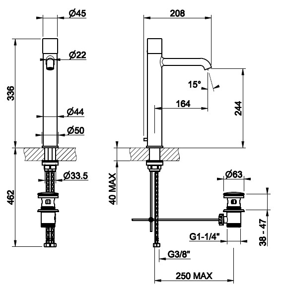 Gessi Habito Bateria umywalkowa z korkiem finox 70503.149