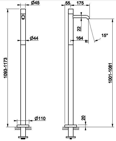 Informacje dostępne u obsługi sklepu.Wymiary:Wysokość: 109,3-117,3 cmWysokość wylewki: 100,1-108,1 cmPasujące produkty:- Element podtynkowy 46189Cena dotyczy baterii bez elemetu podtynkowego
