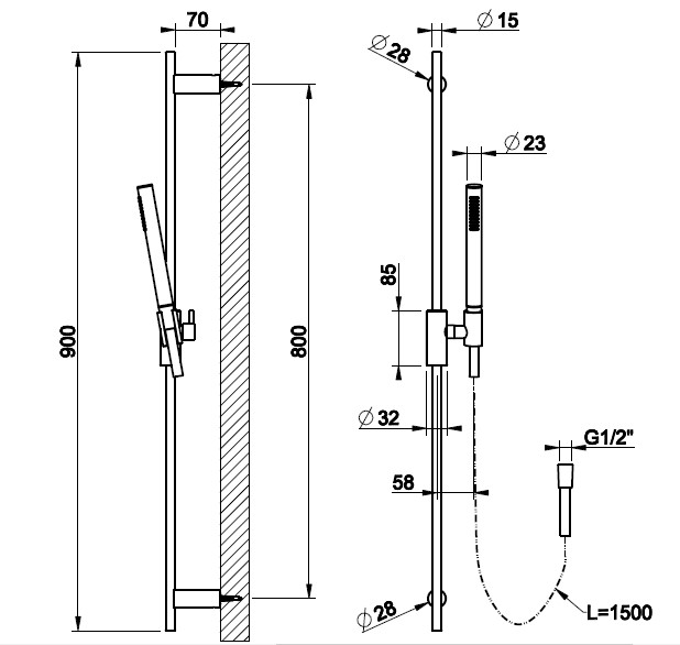Gessi Habito Drążek prysznicowy ze słuchawką i wężem finox 70345.149