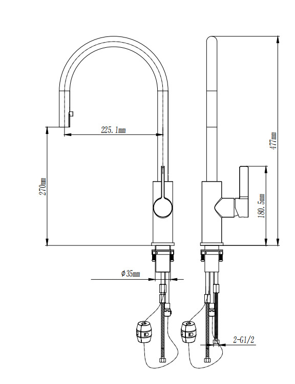 Galatea Design Ginger Bateria kuchenna z wyciąganą wylewką Gunmetal GDDGA291MG WYPRZEDAŻ EKSPOZYCJI!!