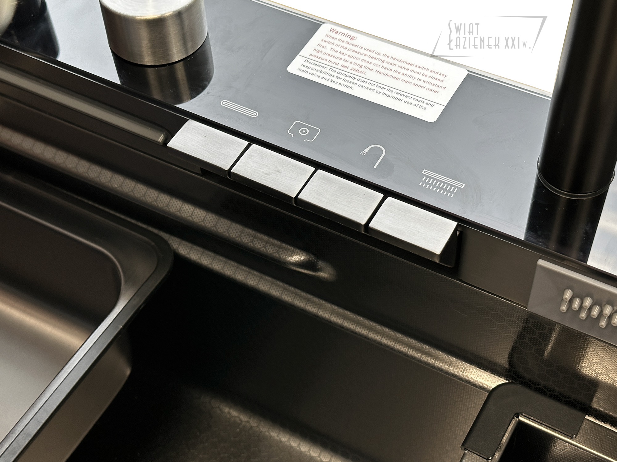 • 5 przycisków fortepianowych (kaskada, myjka szklanek, kran, wodospad, kran wody uzdatnionej)