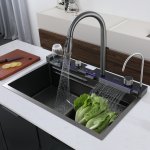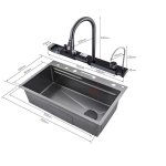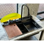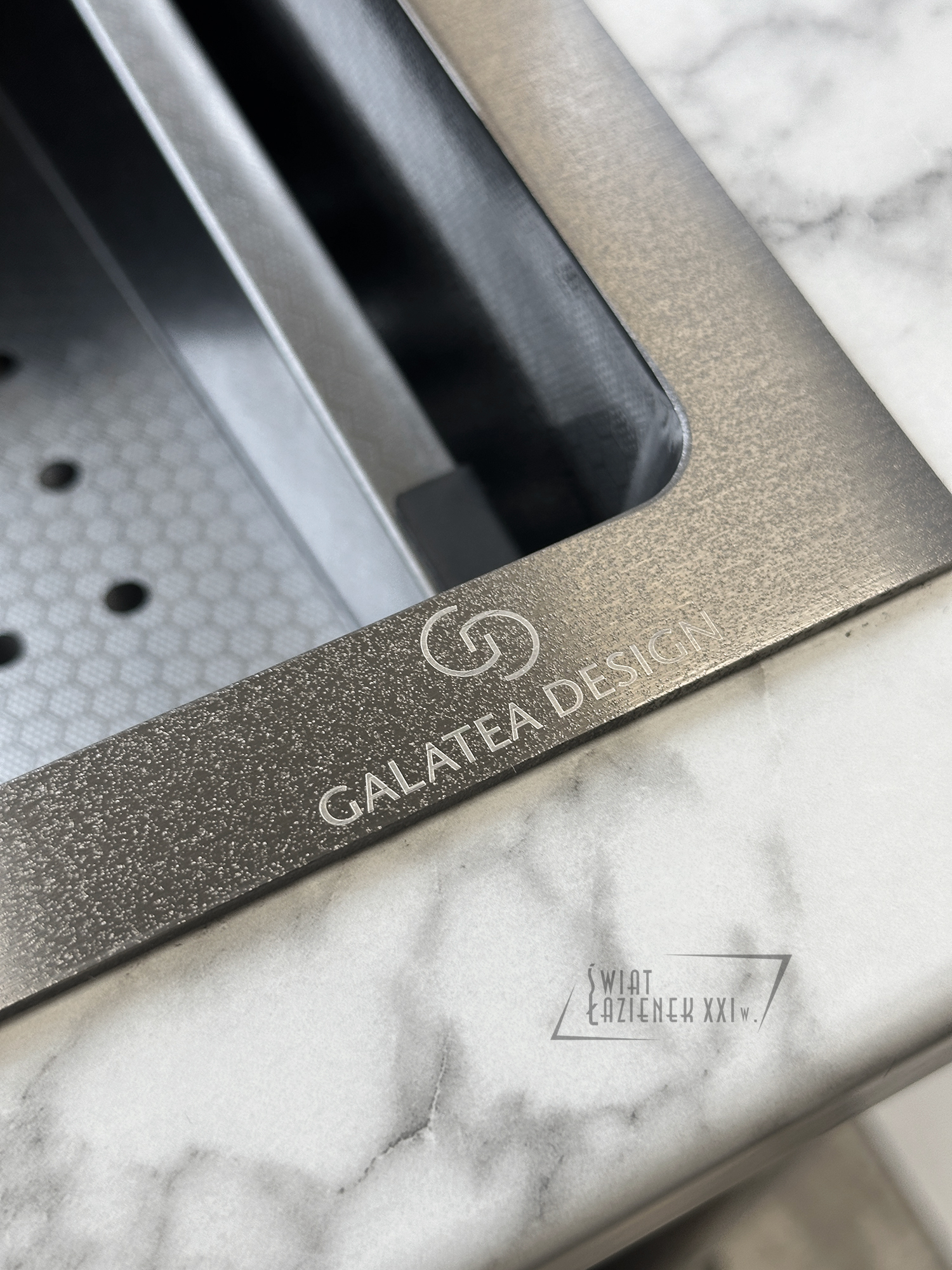 Galatea Design Modus S Zlew z wodospadem, myjką do szklanek, dozownikiem, bateria 3-funkcyjną ZESTAW 75x46 wpuszczany Gunmetal Black GDP31GB