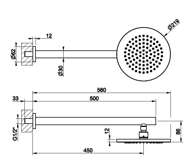 Gessi 316 Deszczownica z ramieniem ściennym steel brushed 54149.239