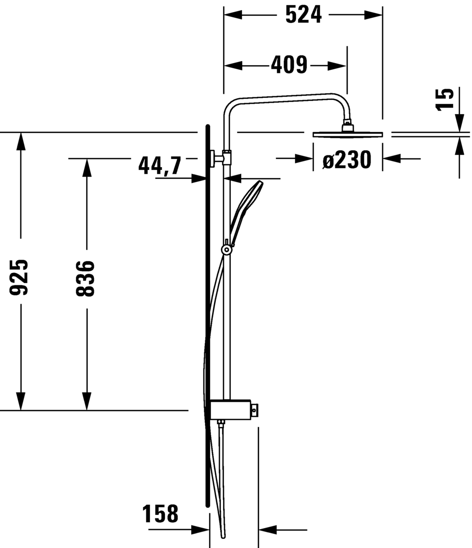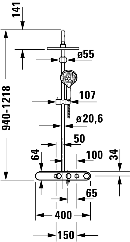 Duravit Zestaw prysznicowy ze zintegrowaną półką MinusFlow 1050 i termostatem prysznicowym chrom TH4382008005