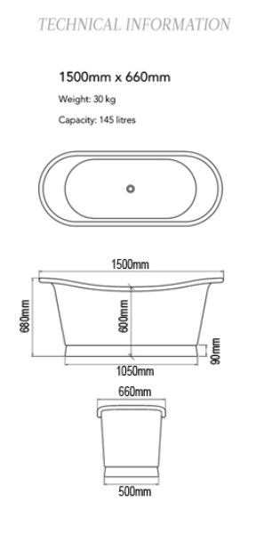 Bleu Provence Napoleon Wanna wolnostojąca 150x66 miedź NAPOLEON.150.CC