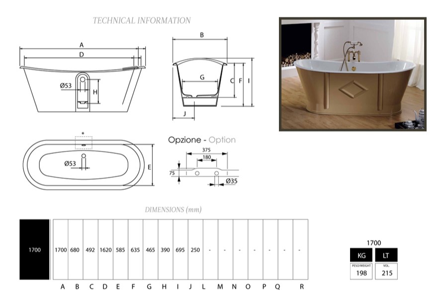 Bleu Provence Charme Wanna wolnostojąca 170x68 beż 9070R