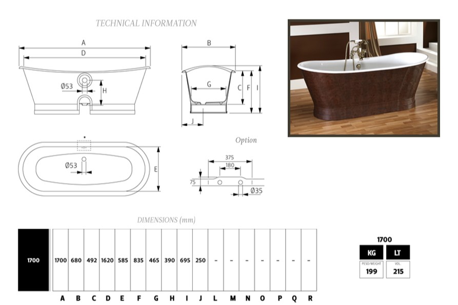 Bleu Provence Antica Wanna wolnostojąca 170x68 solid brass 7070OL