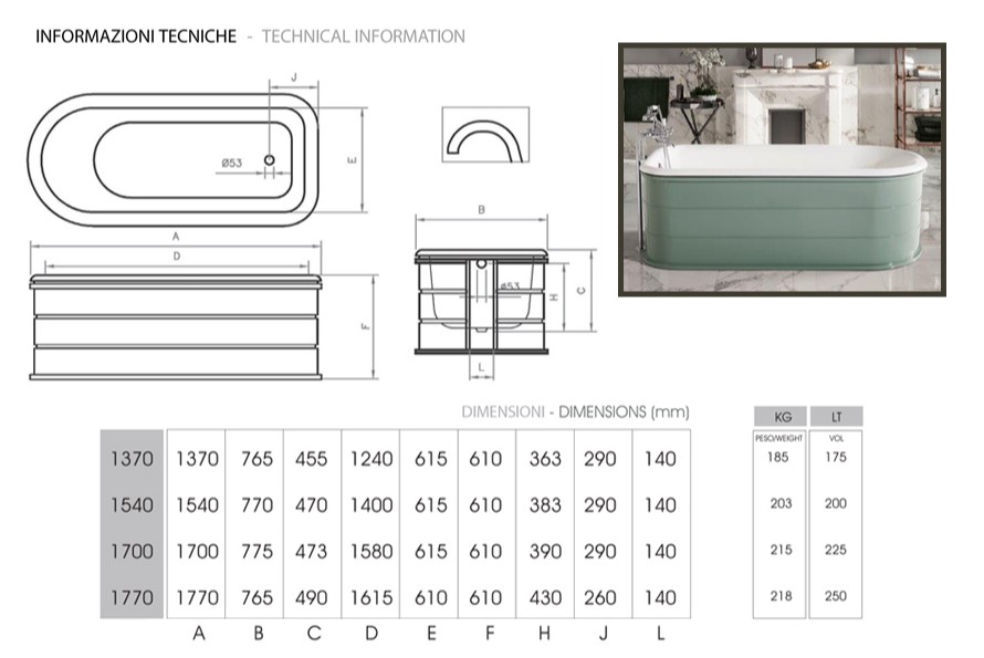 Bleu Provence Fashion Wanna wolnostojąca 170x77 zielony 1670R