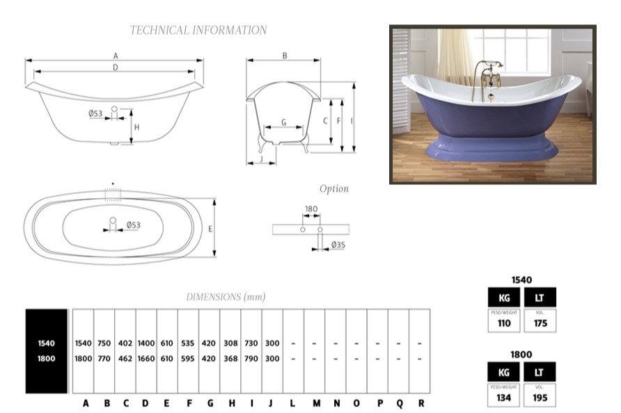 Nóżki złote, nóżki niklowe, nóżki niklowe matowe doliczają 300,00 euro do ceny wanny