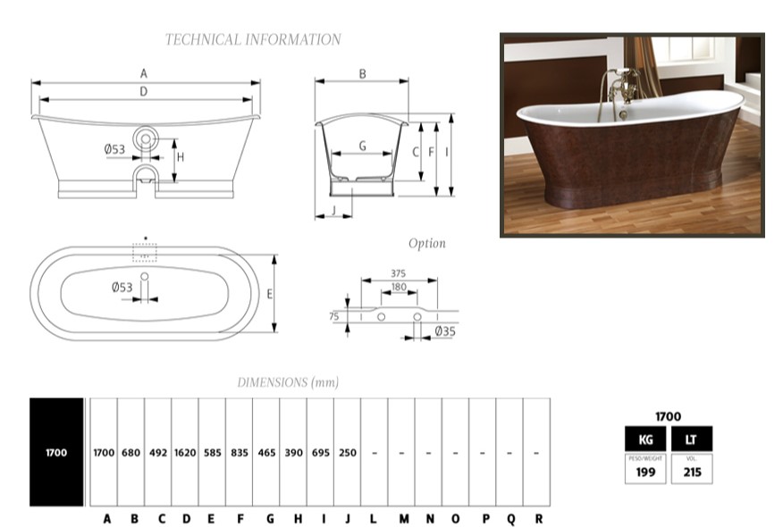 Bleu Provence Antica Wanna wolnostojąca 170x68 żółty 7070R