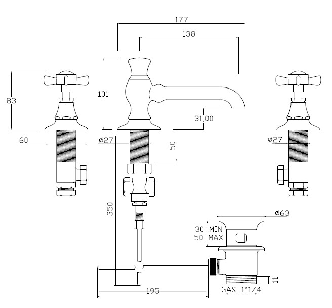 Bleu Provence Bateria umywalkowa 3-otworowa chrom RLF1031CR