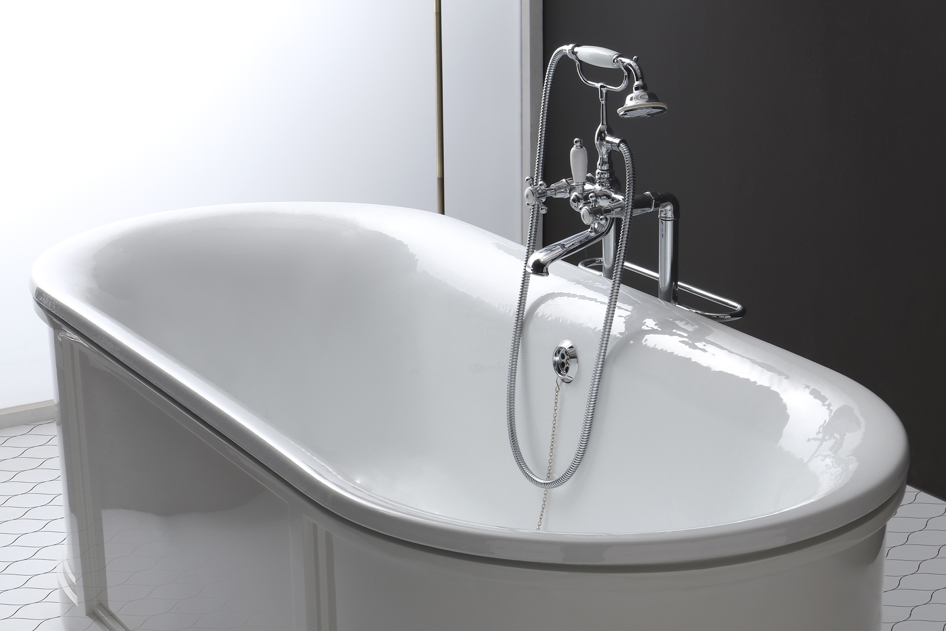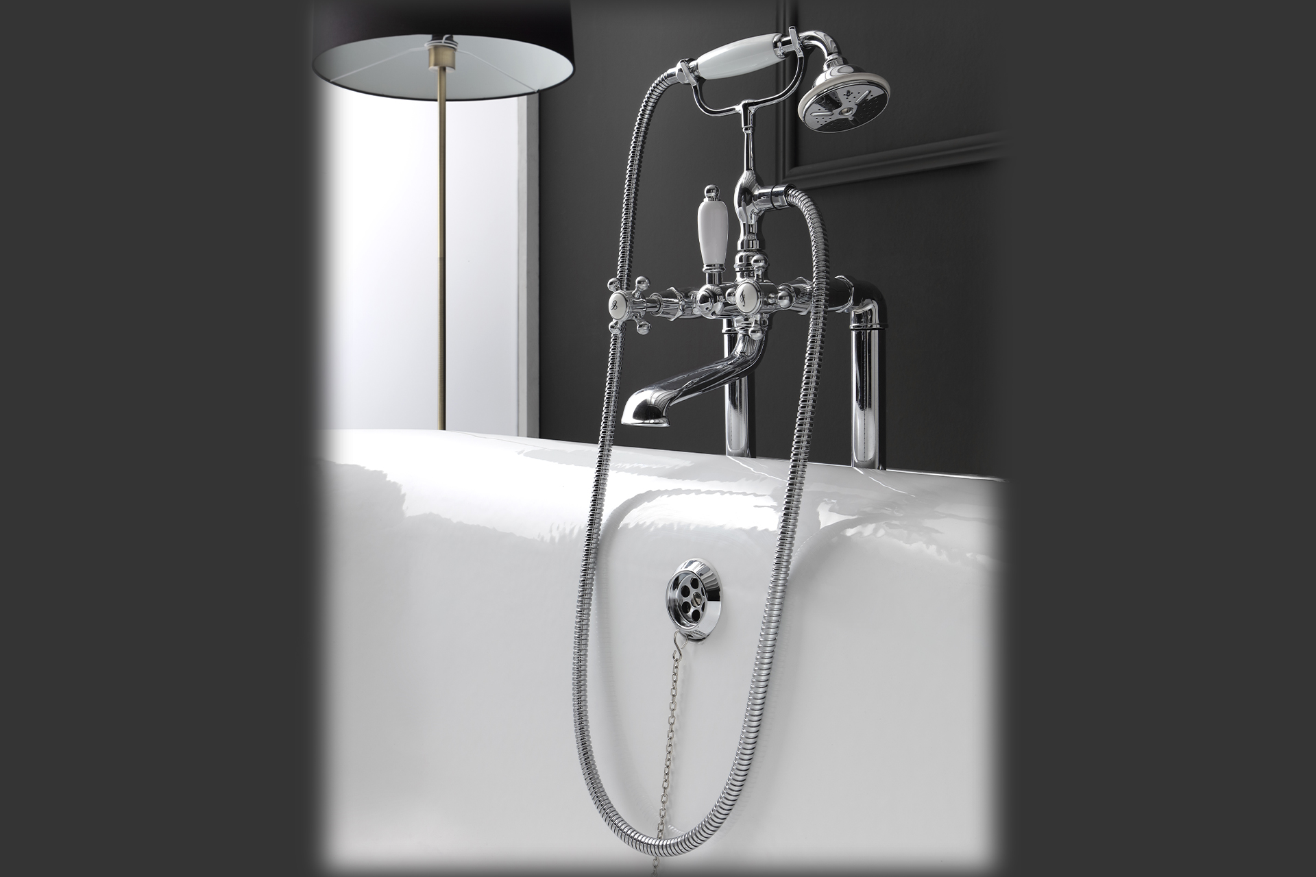 Bleu Provence Bateria wannowa wolnostojąca ze słuchawką i wężem chrom RVC111CR