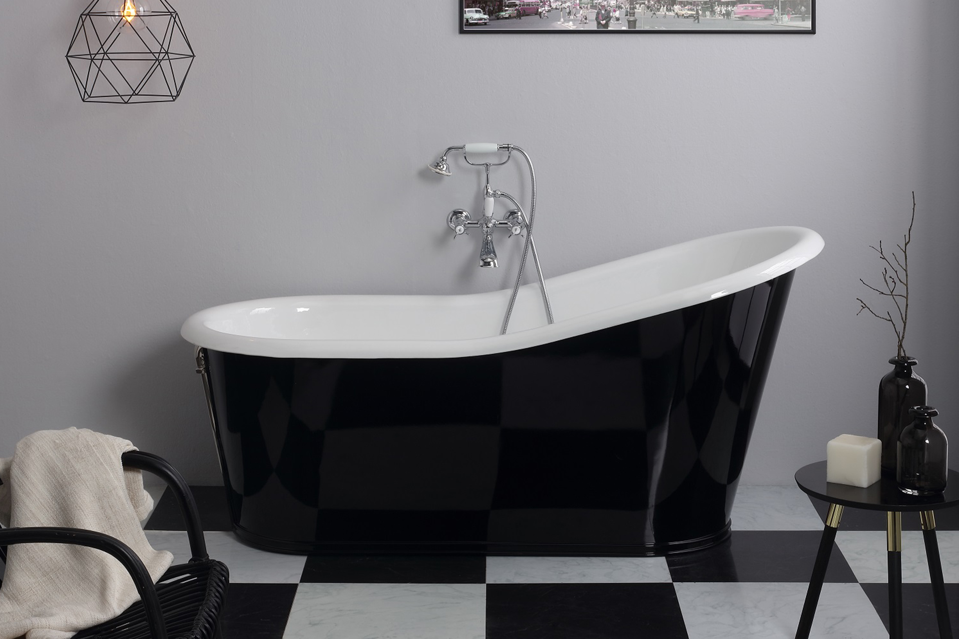 Bleu Provence Bateria wannowa ścienna ze słuchawką i wężem chrom RVF110CR
