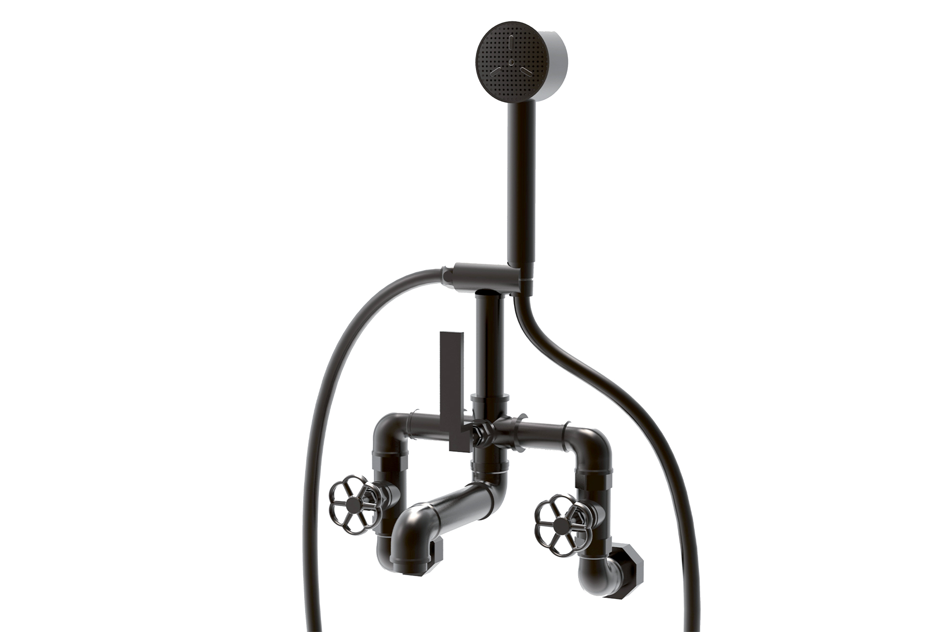 Bleu Provence Bateria wannowa ścienna ze słuchawką i wężem black nickel RVMTM310NN