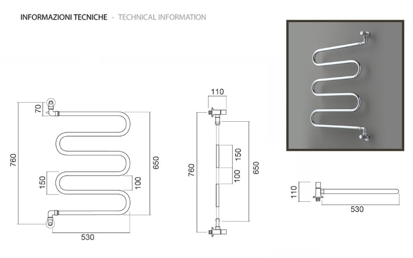Bleu Provence Grzejnik wodny ścienny 65x76 chrom SSERP6CR