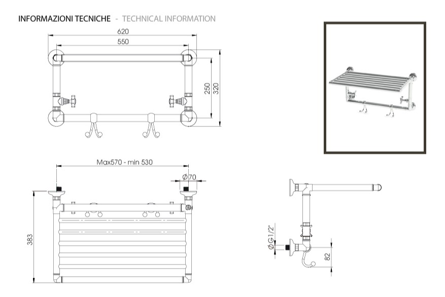 Bleu Provence Grzejnik wodny ścienny z wieszakiem 62x38,3 chrom SSCAP1CR