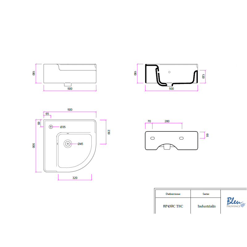Bleu Provence Industrialis Umywalka narożna 50x50 white BP450C