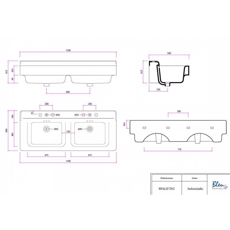 Bleu Provence Industrialis Umywalka podwójna wisząca/stawiana na blat 110x50 white BP4110