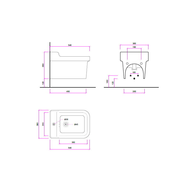 Bleu Provence Industrialis Bidet wiszący 38x54 white BP436