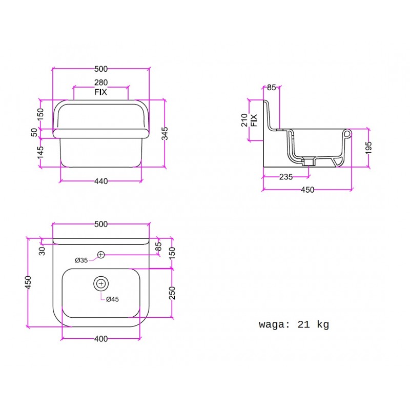 Za dopłatą można zmienić kolor wewnętrznej i zewnętrznej części umywalki