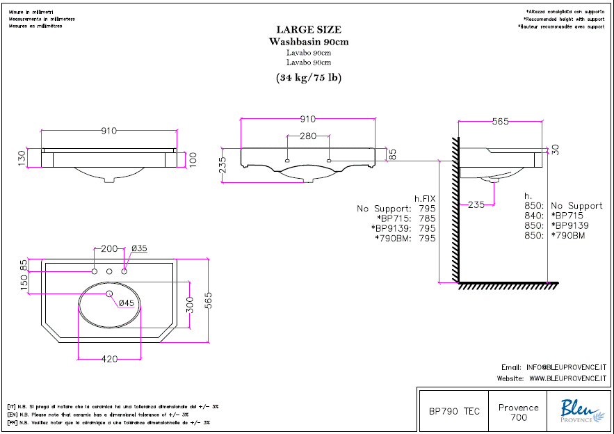 Bleu Provence Umywalka wisząca 91x56 white BP790