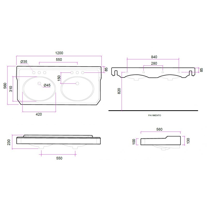 Bleu Provence Umywalka podwójna 120x56 white BP7120