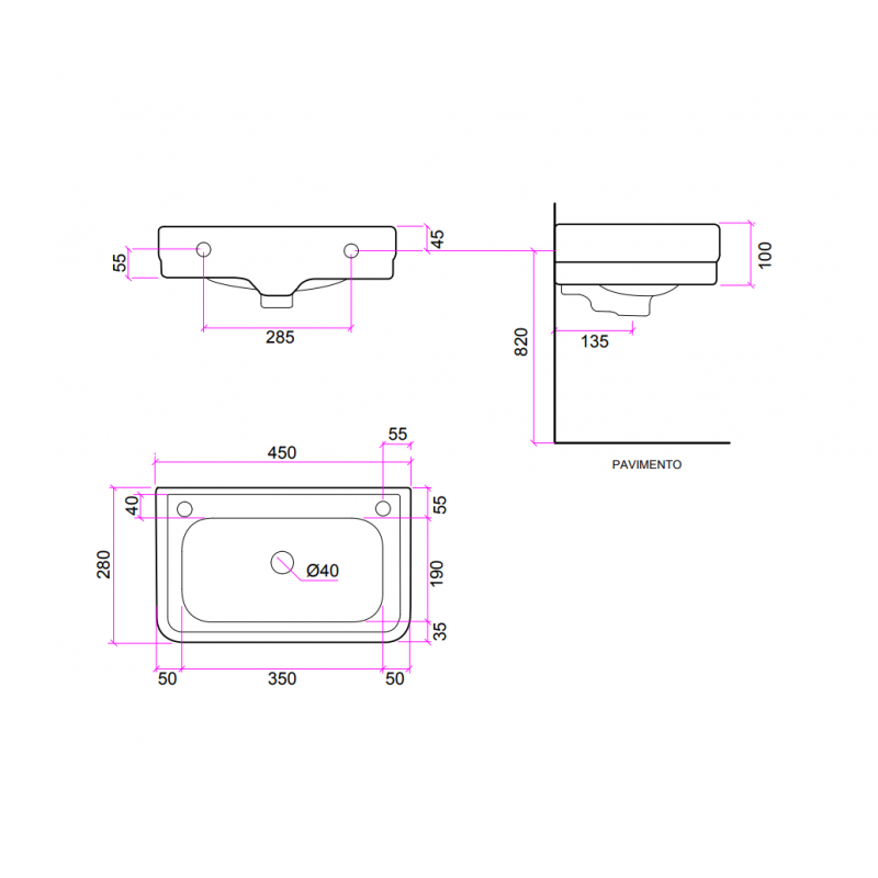 Bleu Provence Umywalka wisząca 45x28 white BP945