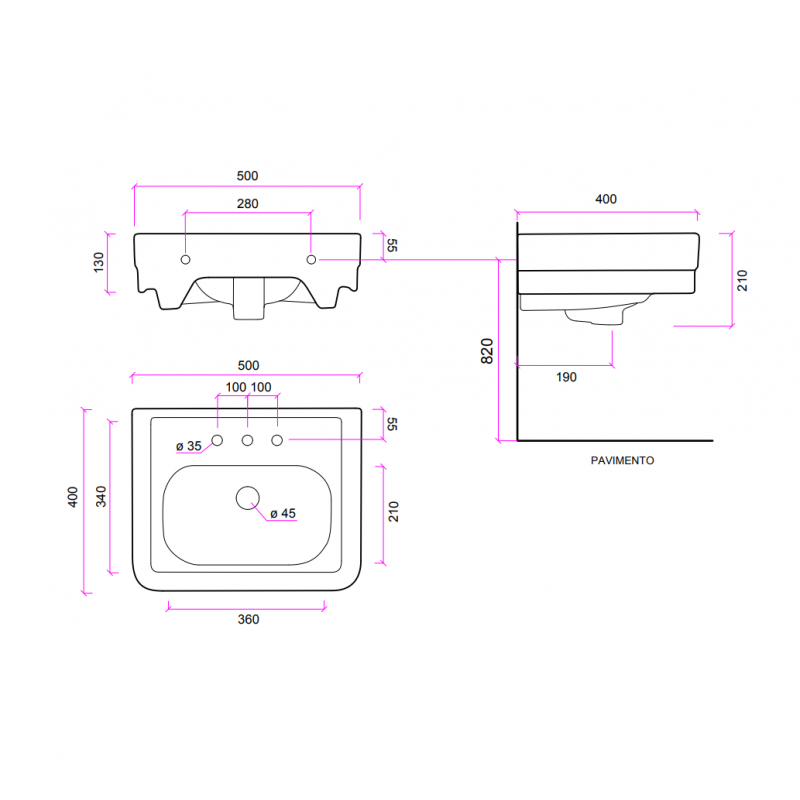 Bleu Provence Umywalka wisząca 50x40,5 white BP950