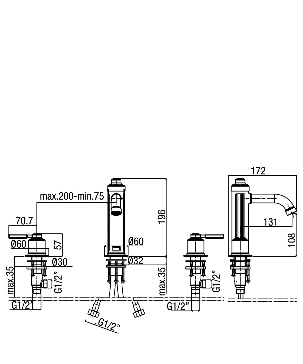 Alpi Le Grand Bateria umywalkowa 3-otworowa chrom LG14691CR