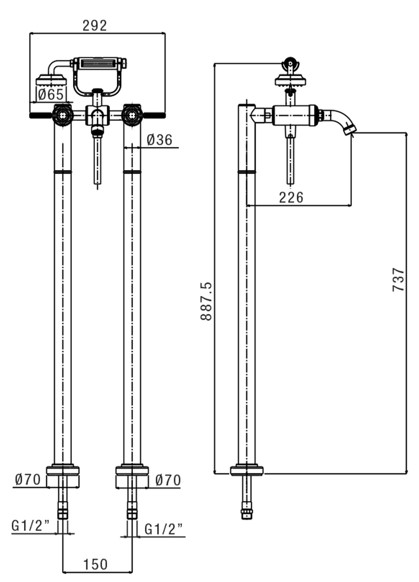 Alpi Le Grand Bateria wannowo-natryskowa wolnostojący z zestawem prysznicowym chrom LG14604CR
