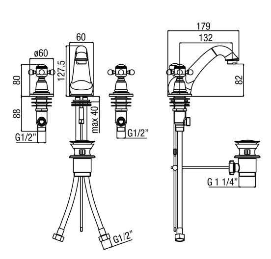 Alpi London Bateria umywalkowa 3-otworowa z korkiem chrom LO41191CR