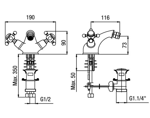 Alpi London Bateria bidetowa jednootworowa z korkiem chrom LO41321CR