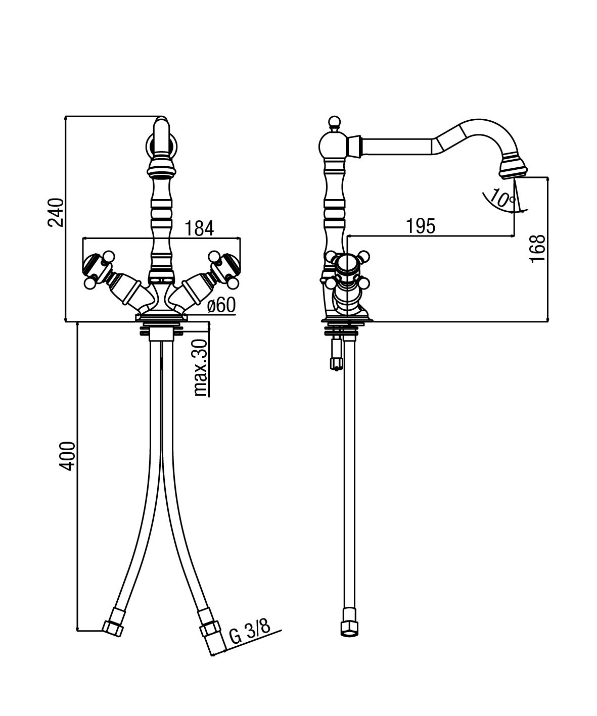 Alpi London Bateria kuchenna jednootworowa chrom LO41682CR