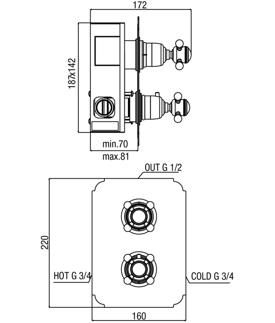 Alpi London Bateria prysznicowa podtynkowa termostatyczna z zaworem odcinającym chrom LO89161CR