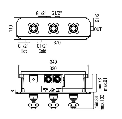 Alpi London Bateria prysznicowa podtynkowa termostatyczna z zaworem odcinającym chrom LO41L169CR