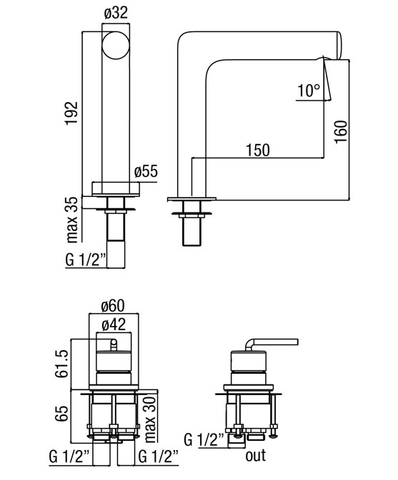 Wysięg wylewki: 15 cm