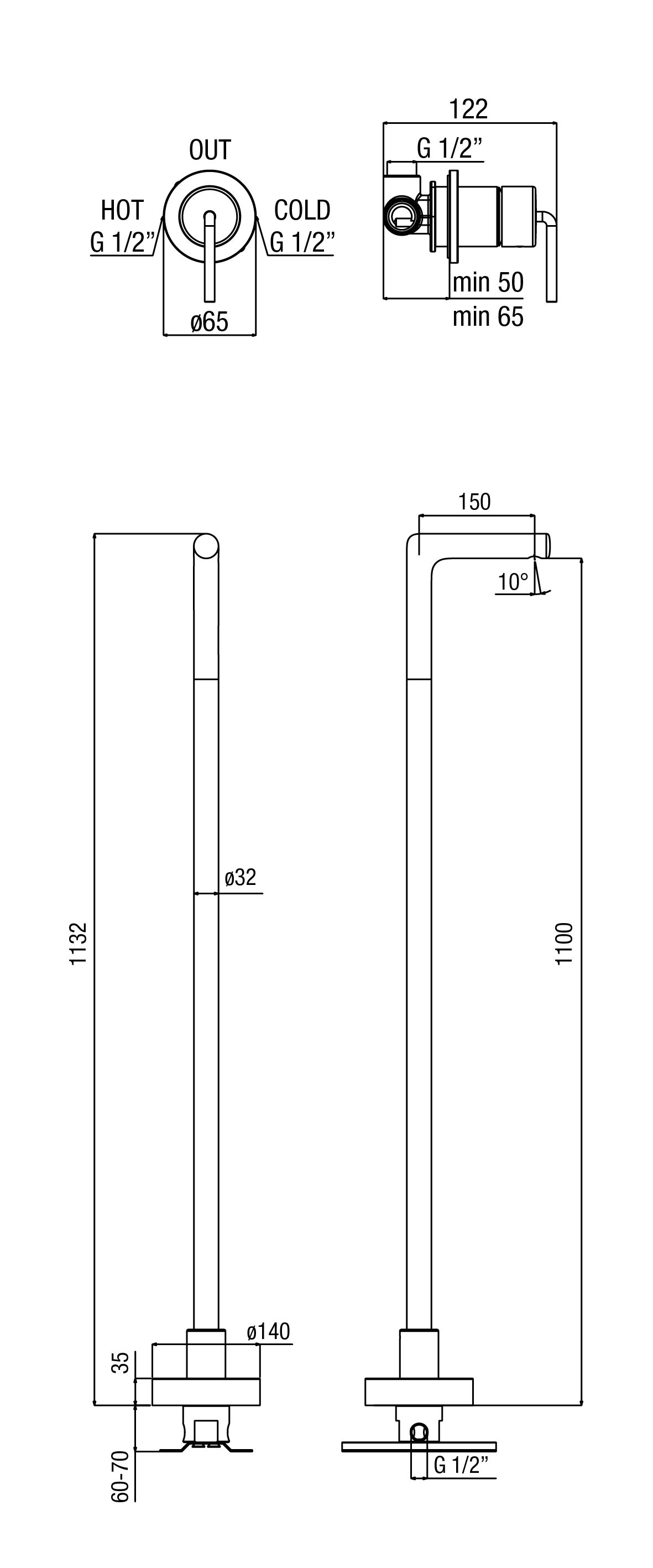 Alpi Allen Bateria umywalkowa wolnostojąca z mieszaczem podtynkowym chrom ALB01CR+AL98861CR