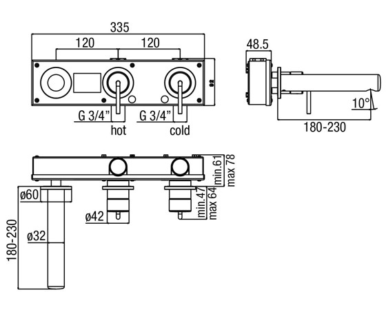 Alpi Allen Bateria umywalkowa podtynkowa 3-otworowa chrom AL98891/18CR