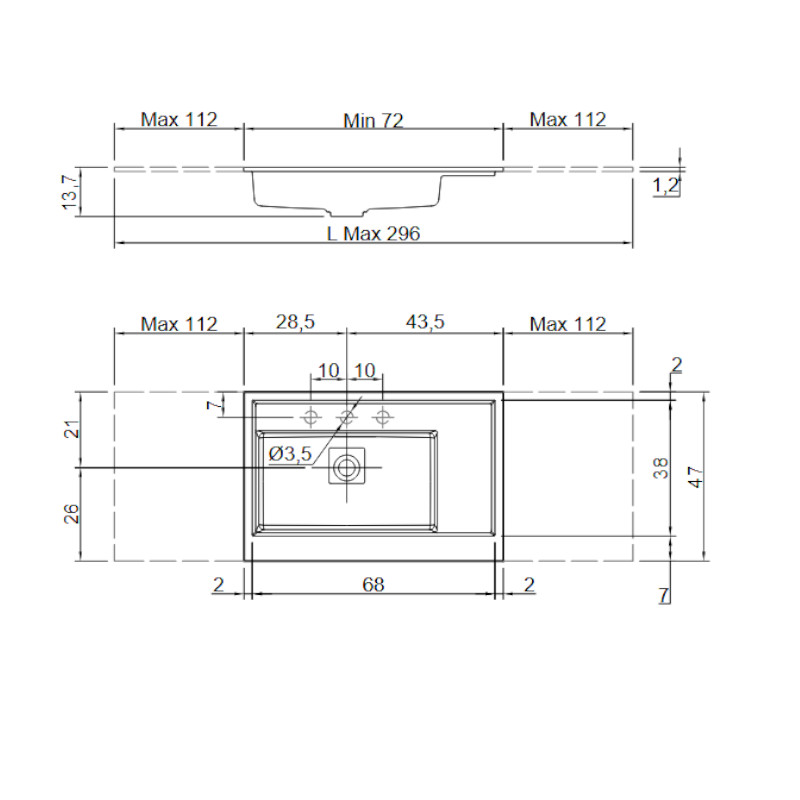 Umywalka bez przelewu, z możliwością wybicia otworów na baterię