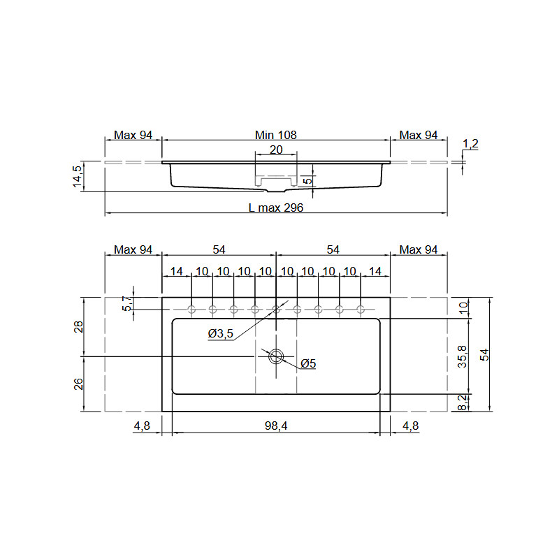 Umywalka bez przelewu, z możliwością wybicia otworów na baterię