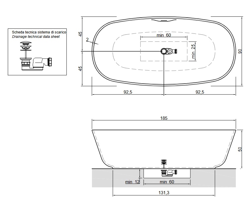 Antonio Lupi Baìa Wanna wolnostojąca 185x90 cm Biały BAìA