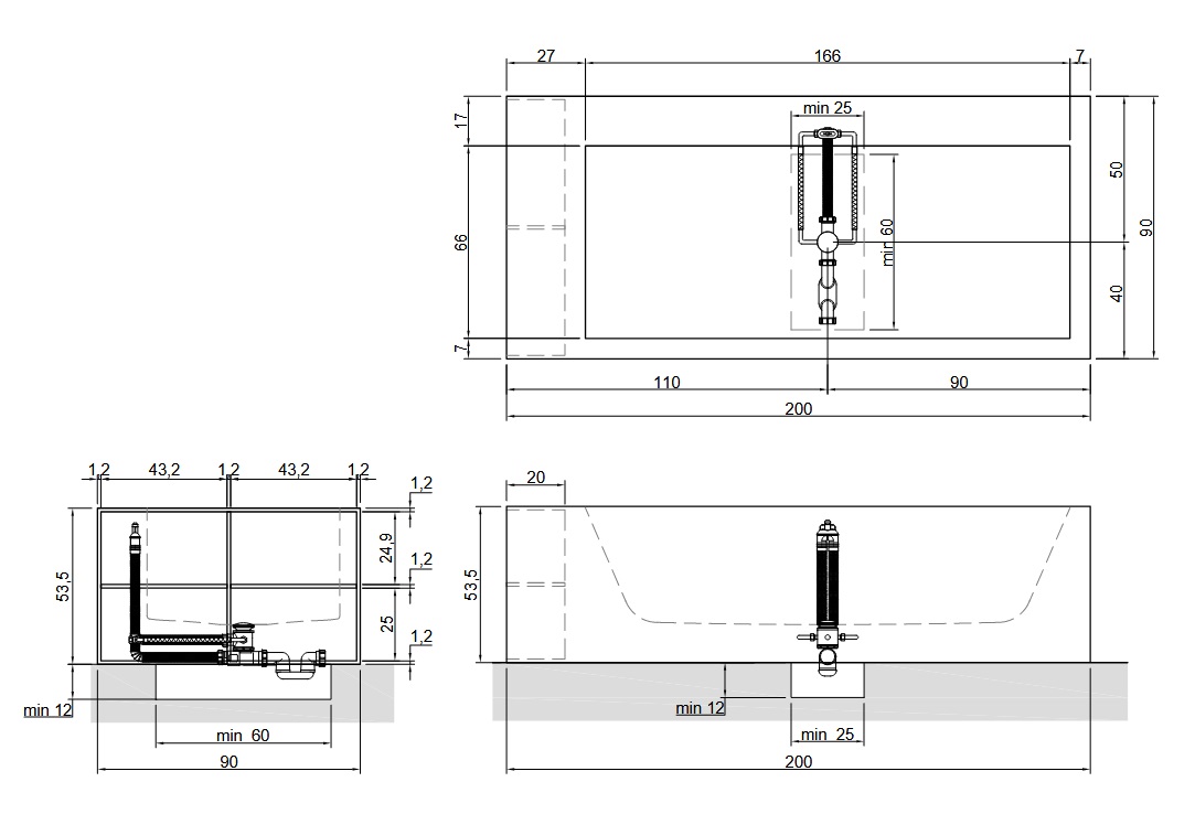 Antonio Lupi Biblio Wanna z półkami 200x90 biały BIBLIO43