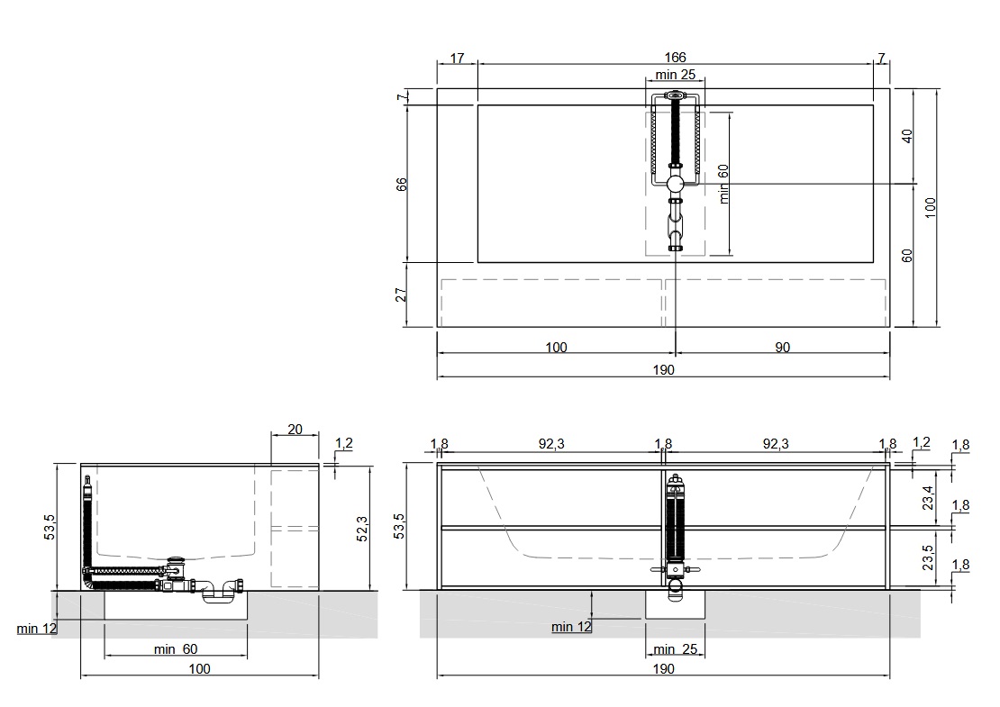 Wanna z rantem na zamontowanie baterii z lewej lub prawej strony