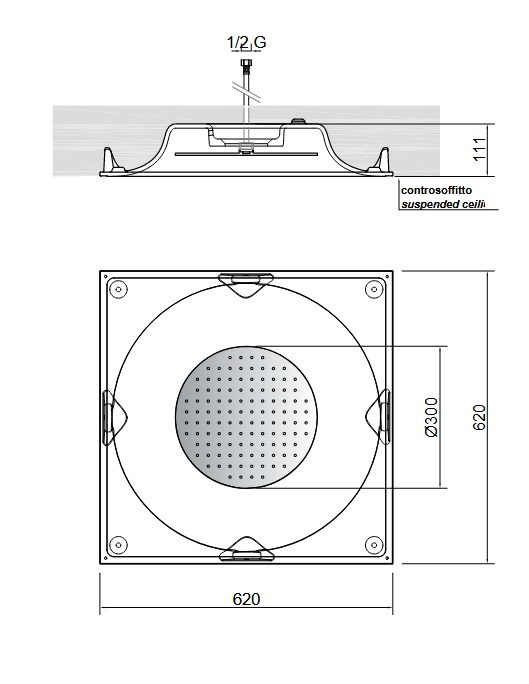 Antonio Lupi Meteo Deszczownica sufitowa 620x620 mm z podświetleniem LED Biały METEO_INL
