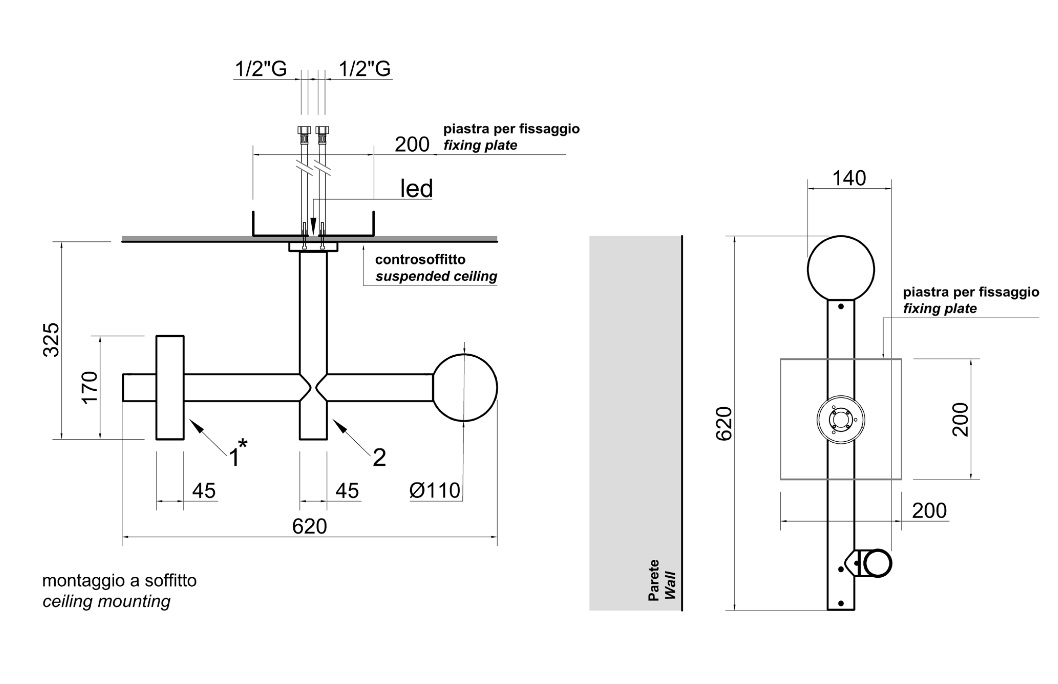 Antonio Lupi Apollo Prysznic ścienny z oświetleniem LED i z 2 strumieniami Czarny APOLLO4