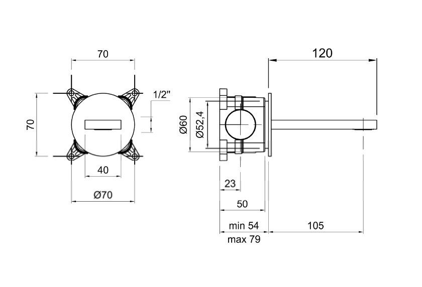 Kolor: Chrom Produkt dostępny w kolorach z galerii. Więcej informacji u obsługi sklepu. Wymiary: Średnica rozety: 70 mm Długość wylewki: 120 mm Wysięg wylewki: 105 mm
