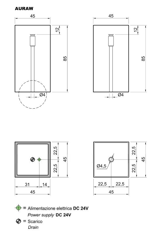 Antonio Lupi Aura Umywalka wolnostojąca 45x45 cm z podświetleniem LED Ambra AURAWAMBRA