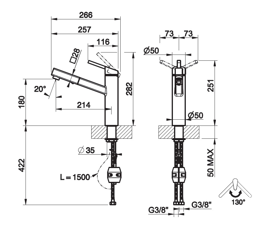 Wysokość wylewki: 180 mm