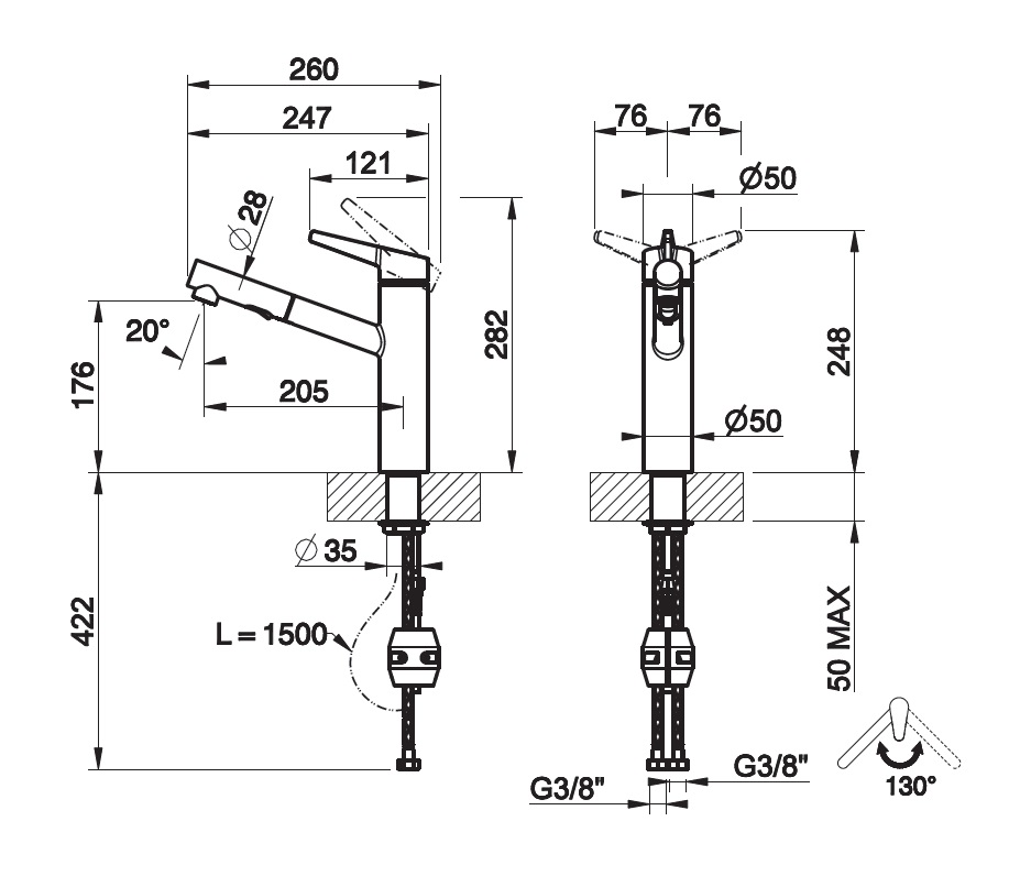 Gessi Thalium Bateria kuchenna z obrotową i wyciąganą wylewką Chrom 60536.031