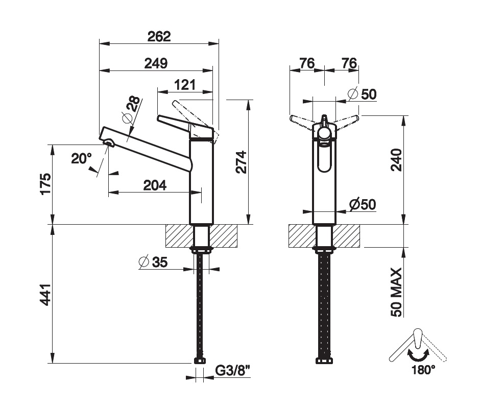 Gessi Thalium Bateria kuchenna z obrotową wylewką Chrom 60532.031